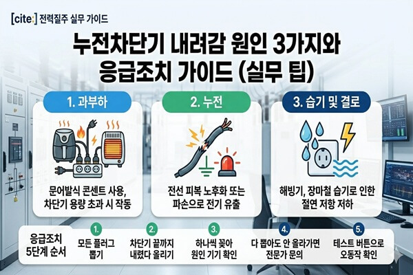 차단기를 다시 올리기 전에 반드시 ‘원인’부터 제거해야 합니다. 아래 순서대로 따라 해 보세요.